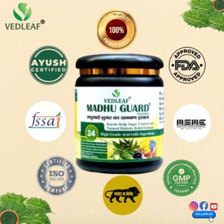 - Dosage:Take 1 teaspoon (approximately 3-5 grams) of Vedleaf Madhu Guard powder twice daily.